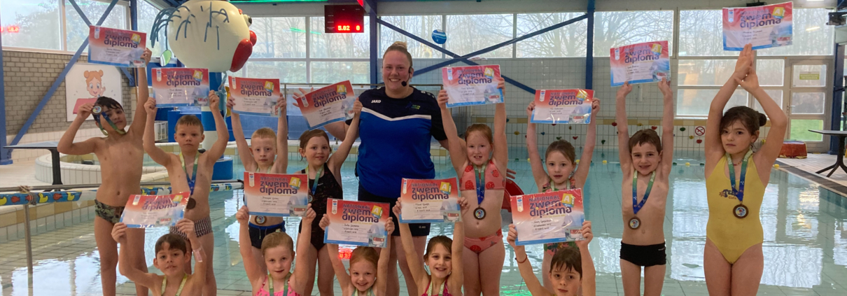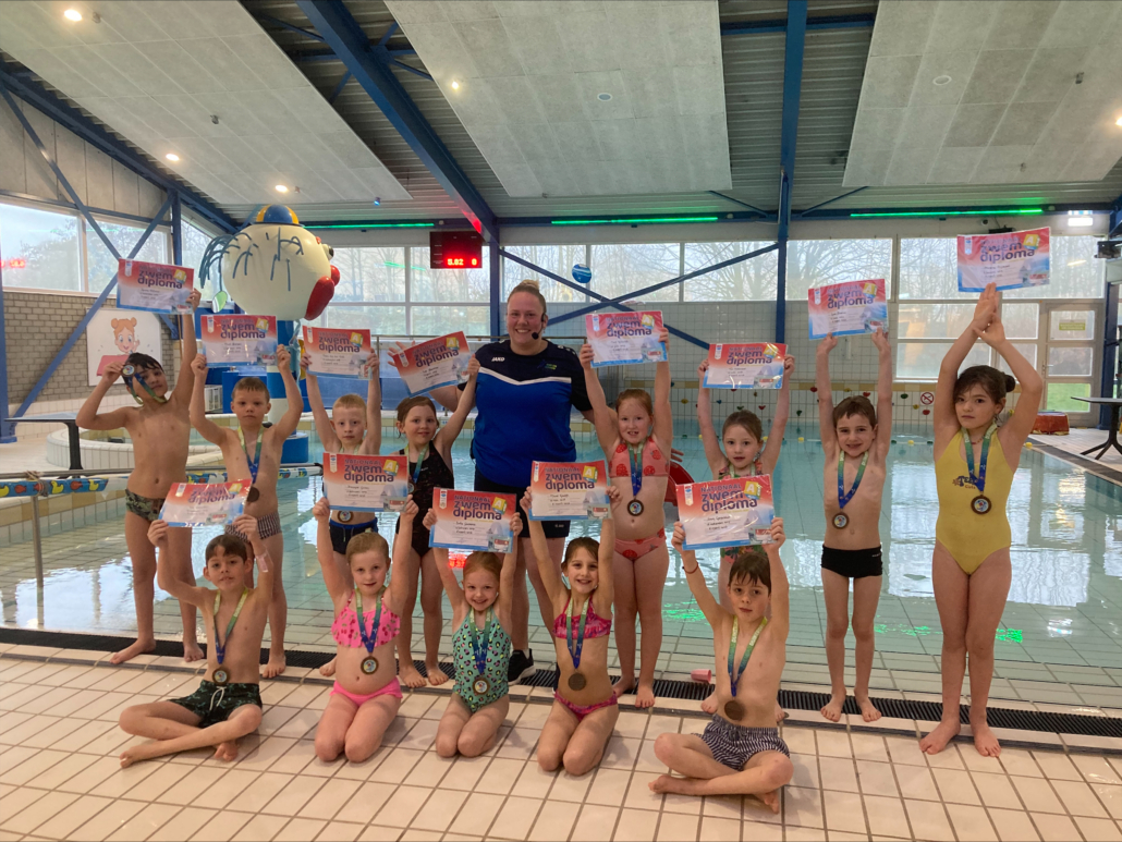 Zondag 8 maart hebben Aksana, Hassan, Zoë, Luca, Mick, Isola, Danique, Maud, Noor, Sam, Tim, Fie en Owen laten zien wat ze kunnen en met succes hun diploma A behaald in zwembad Duikerdel.